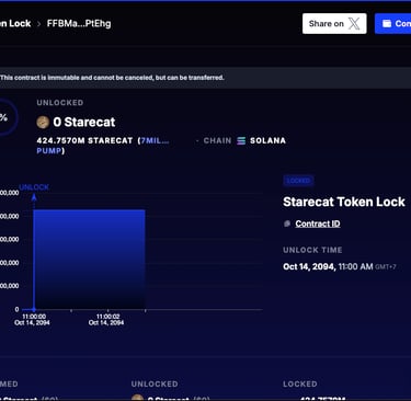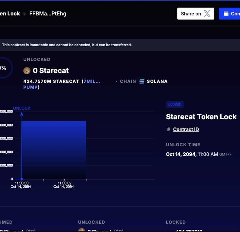 The Stare Cat is not just another meme but a statement of patience and conviction. Launched by @slingdeez, the project embodies the quiet endurance of the original stare, calm, unbothered, and here for the long game. With 42.5% of the total supply locked by our developer for 69 years, this is not speculation; it is commitment